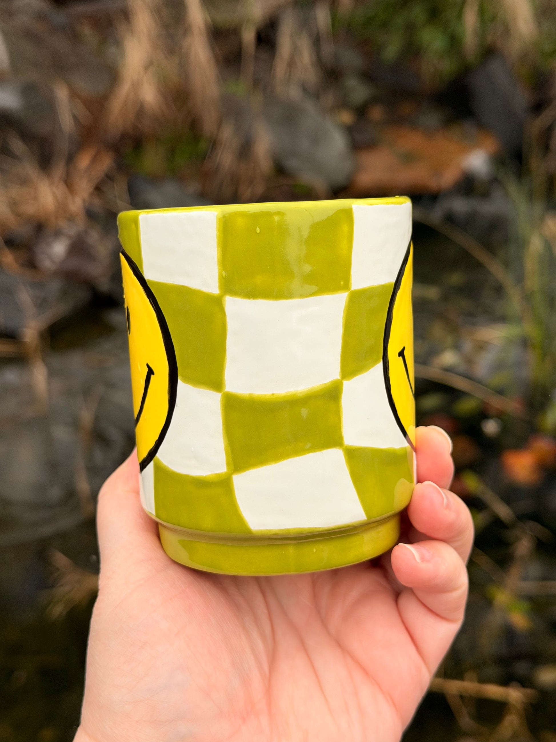 Wavy Checkered Smile Mug